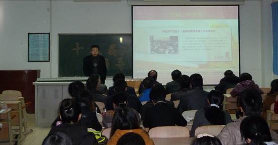 为贯彻落实学校开展的十八届三中全会精神学习辅导和理论宣讲活动,12月9日下午,信息工程学院邀请学校党的十八届三中全会精神宣讲团成员、社科部党总支书记李文做了《十八届三中全会精神解读》的宣讲报告。信息工程学院全体教工党员、学生党员听取了报告。