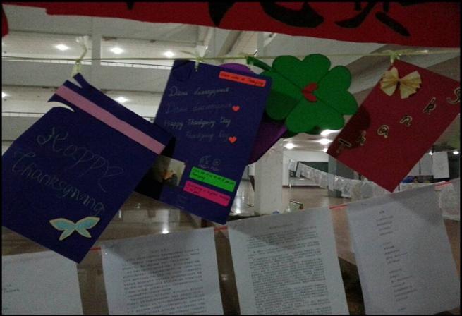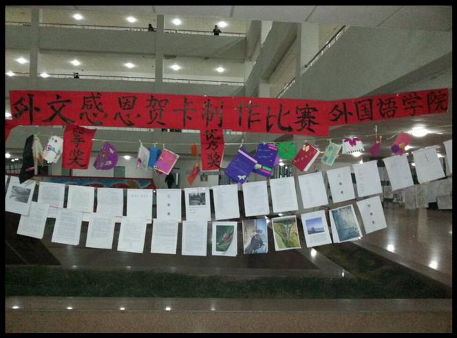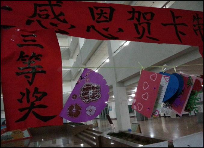 外文感恩祝愿贺卡制作比赛展出的各色卡片带来冬日温馨,同学们将心灵深处的情感尽情抒发,在祝愿卡片的设计制作中实现情感的升华。将祝福和问候转换为笔下流畅的外文,用祝愿卡寄予个人情思,点缀美好生活,将美好的祝愿传达。