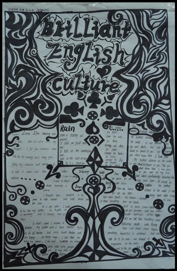 外文海报设计比赛呈现的一幅幅佳作让我们感受到创造力带来的别样艺术气息,同学们用巧妙的构思和丰富的想象力将外文与图画相得益彰,渲染出青春多变风格、多样特色。“艺术滋润心灵,文化陶冶情操。”外文书法大赛佳作连连,展现了同学们丰富的精神内涵和深厚的文化底蕴。遒劲的笔墨、清新整洁的书写,或行云流水、或笔走龙蛇、或整齐有序,多样的字体、迥异的风格,挥洒出青春自信洒脱的风采。