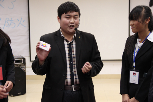 激情洋溢的开场舞后,比赛正式开始。主持人宣布比赛规则并向观众介绍本次竞赛队伍,积极活泼的队名、亲友团的助威呐喊、展现队伍特色的精美视频,赢得现场观众的阵阵掌声。比赛围绕安全知识分为五个环节,第一环节“初露锋芒”中,各队回答精彩,难分伯仲。随后的“争分夺秒”抢答环节中,面对抢答倒计时,参赛队员从容应对,争相答题,比赛现场紧张而又刺激。一首动听的《你是不是我最疼爱的人》 后,“全名互动”环节将比赛推向了高潮,台下的同学们都踊跃参与,纷纷拿起手机进行抢答。情景题中,参赛选手们面临一个个虚拟的危险场景,镇定自若,回答地迅速而又简练。在激动人心的“最后一搏”环节中,选手们紧抓最后的机会,你追我赶,互不相让,激烈的比拼点燃了现场气氛。之后的魔术表演“魔幻扑克”中,熟练的手法令同学们赞叹不已。此次竞赛,精彩纷呈,展现出了同学们对消防知识的灵活掌握。经过激烈的角逐,2013级化学制药专业“逆战队”博得头筹,2013级制药工程二班、化学制药二班获得最佳亲友团奖。