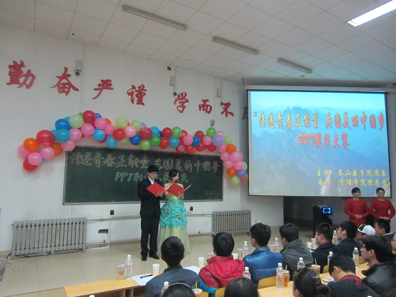 为丰富大学生课余文化生活,提高同学们的计算机操作水平与设计创新能力,管理学院特举办“传递青春正能量共圆美丽中国梦”PPT制作大赛。