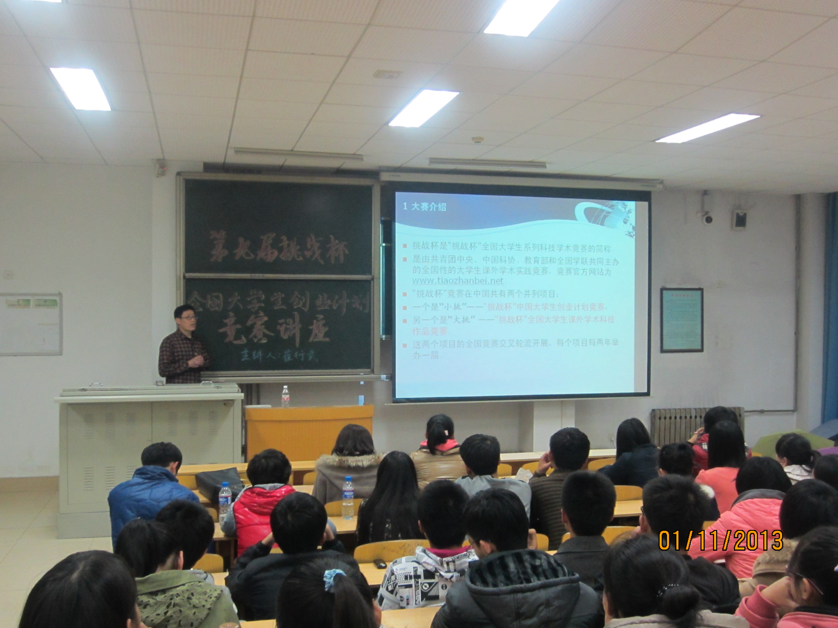 本次专题讲座是管理学院第二届青年文化艺术节科技创新系列活动之一,为同学们参加“挑战杯”创业计划大赛作了思想动员和理论指导,增强了参赛同学的信心。
