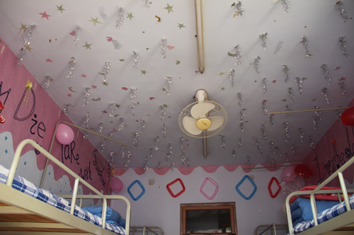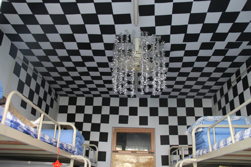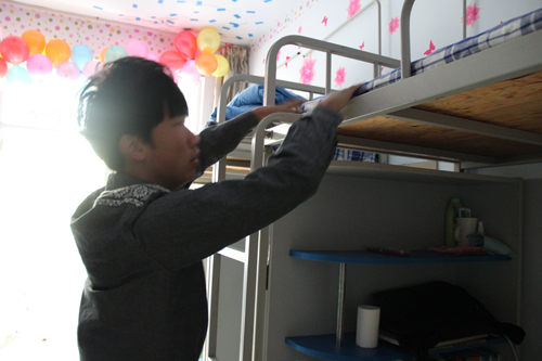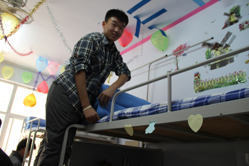 早在一个星期前,全院同学便纷纷投入到宿舍美化当中。当评委们走进干净整洁的宿舍,便有宿舍代表上前详细解说宿舍装扮的主题和内涵,“龙渊”、“中南海”、“家”等主题各有特色。其中,一个以四季为主旋律的宿舍,墙壁上贴有每个季节代表性植物的图片,并配以亲笔书写的诗词,以文竹等植物做装饰,颇具一番韵味。女生宿舍制作的留言板上五彩的便利贴记录下生活的点点滴滴,爱的信箱搭建起了心灵的桥梁。同学们都充分发挥各自的设计能力展现宿舍装扮的独特魅力,别具匠心地用扫把、气球、军训服等制作了两位“安全小卫士”,还有利用废旧的饮料瓶和纸盒装饰墙面,环保理念在宿舍文化中得以体现。同学们的创意大胆新奇,将宿舍装扮得美丽而又温馨。