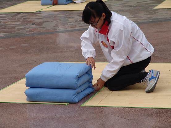 本次比赛的评委由大学生公寓服务中心各位宿舍管理员老师担任。选手们分成七组依次上场。他们动作娴熟、轻盈,通过碾压、翻转、整理等步骤把原本乱作一团的被子变成了整齐的“豆腐块”。现场气氛十分热烈,选手们精彩的表现赢得在场观众的阵阵叫好。经过激烈角逐,比赛共产生一等奖2名,二等奖4名,三等奖6名。赛后,胡作铭主任对本次大赛做了点评,他高度赞扬了同学们的精彩表现,鼓励同学们从现在做起,努力养成良好的生活习惯,提高对宿舍安全的重视,让宿舍成为同学们温馨舒适的家。