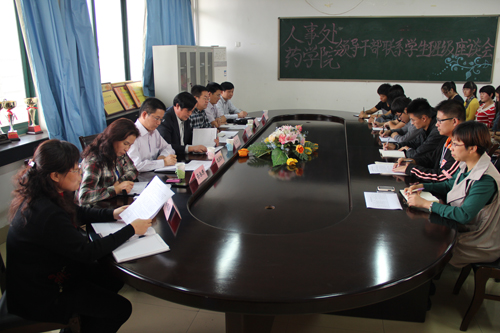 10月9日,人事处、药学院在教学北楼A5017共同举行了党政领导干部联系学生班级座谈会。