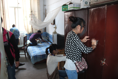 一到敬老院门口,志愿者们看到很多老人在烧纸钱拜祭已故的亲人,便纷纷上前帮忙。在团长的组织下,同学们开始了志愿服务活动。一些志愿者帮老人按摩肩膀,和老人们唠起了家常,欢声笑语不断从敬老院传出,细致的关心和亲切的问候让老人们感受到了家的温暖。看到岁数大的老人行动不便,志愿者们主动帮助老人整理床铺,打扫房间,擦桌子和摆放物品。看到志愿者们忙碌的身影,老人们的脸上都露出了慈祥的笑容。志愿者们的到来,给老人们送去了几分慰藉,让他们在这倍思亲的佳节里不再孤单,不用登高,不用赏菊,不用饮酒,任凭只是半日的膝前绕行。
