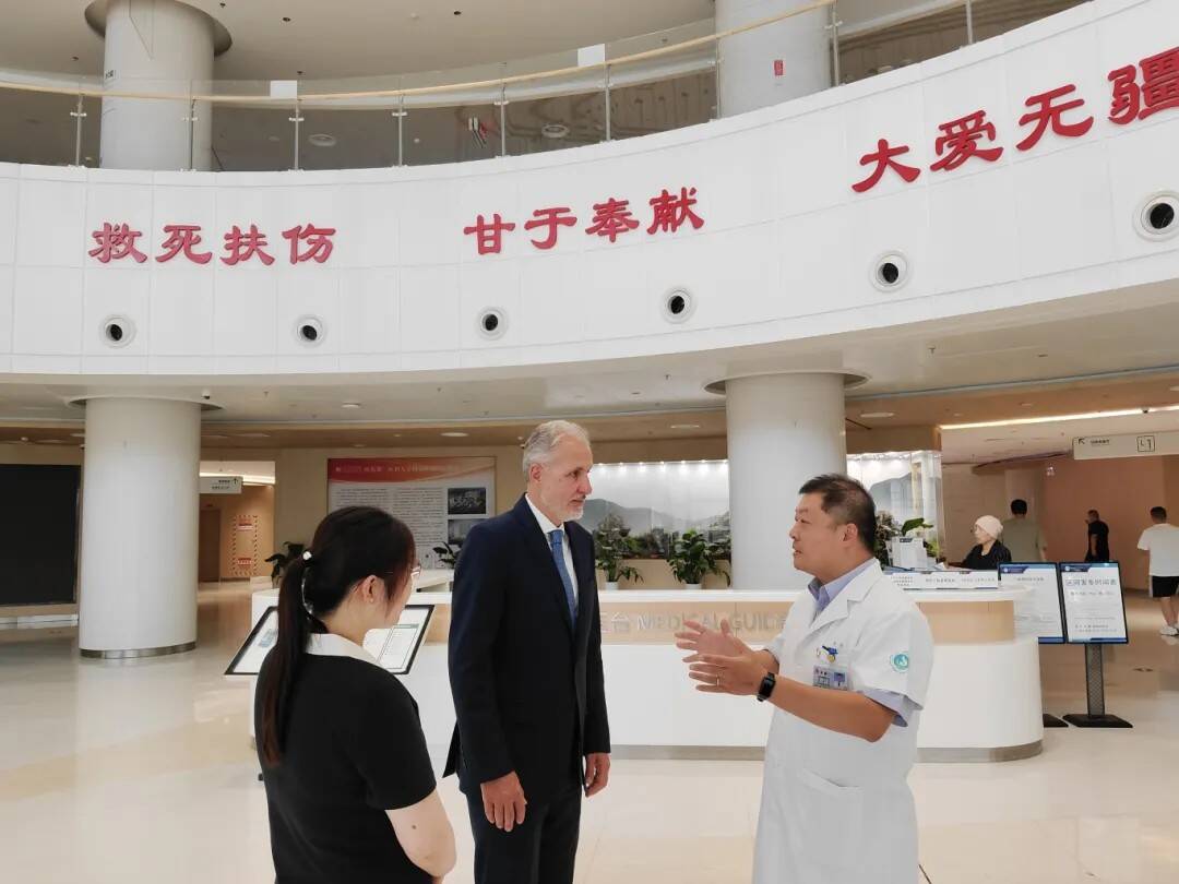会后,Dan Gabriel Duda教授一行赴医院质子中心参观考察,深入了解了质子中心的设备配置、技术优势、治疗流程以及临床应用情况,给予了高度评价,并就质子治疗技术的应用和发展与专家团队进行了深入交流。