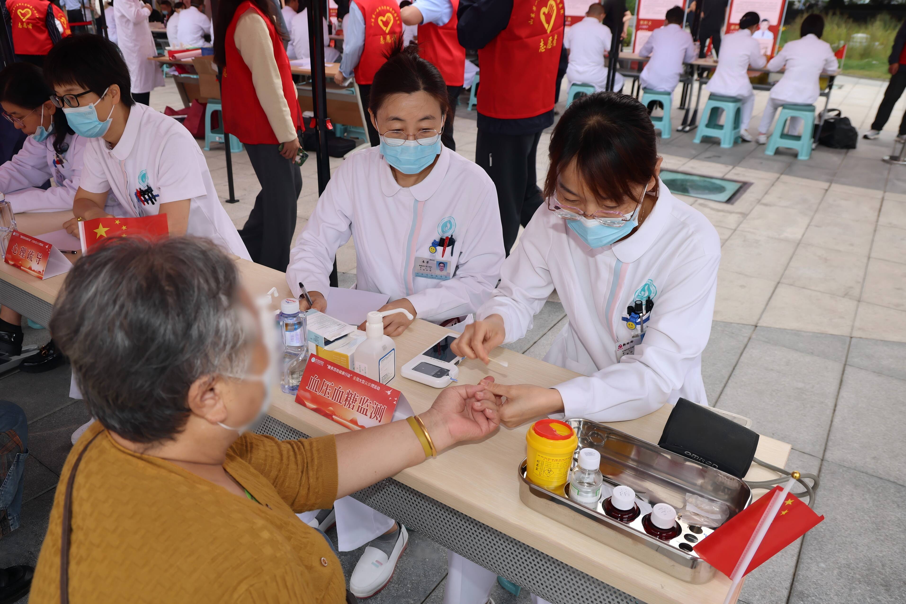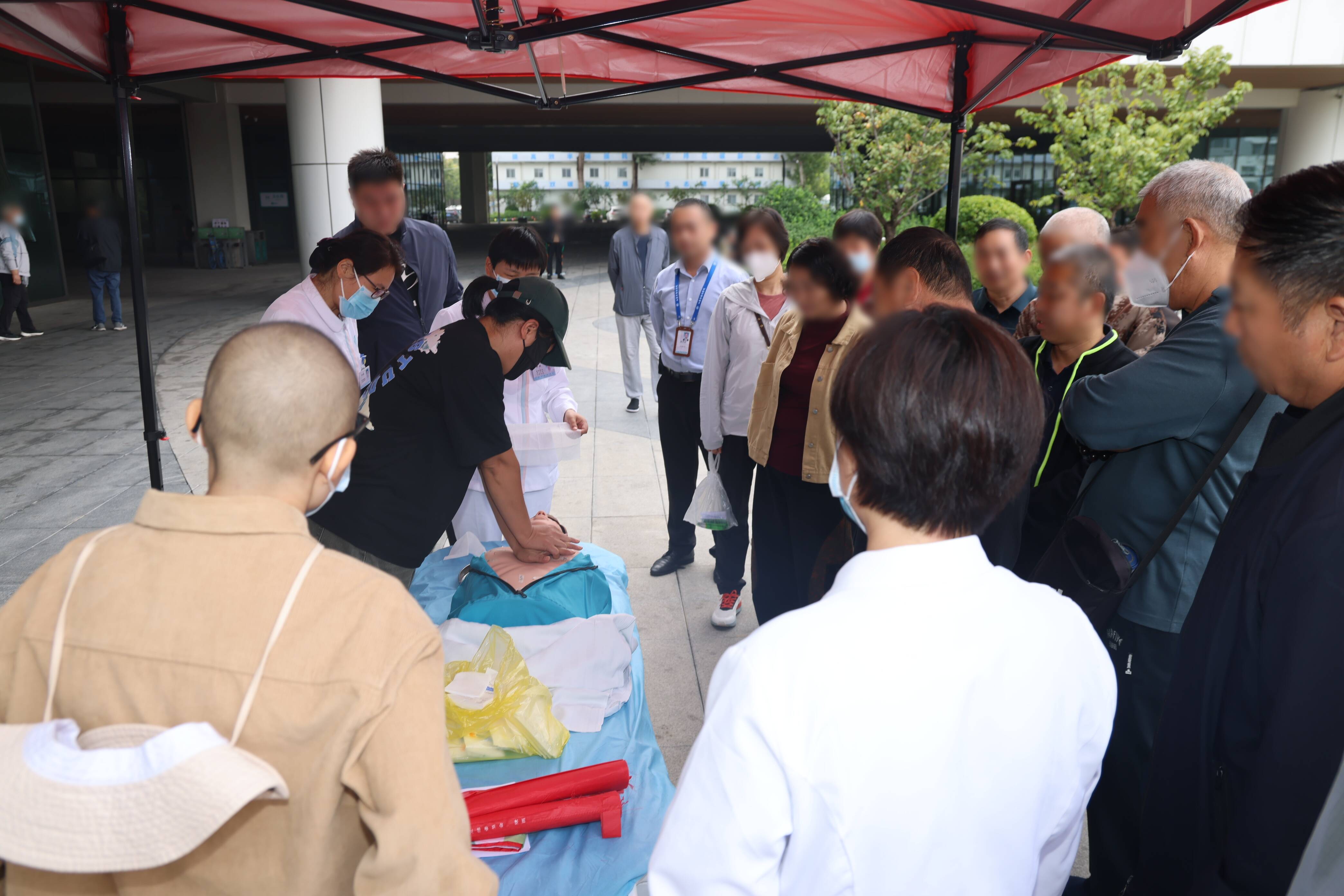 在活动现场,医务人员免费为群众测量血压、血糖,并通过组织急救演练和发放宣传单页等方式向公众科普急救技能和抗癌防癌健康知识,引导公众养成良好的生活习惯,树立健康的生活观念,提升健康素养水平。
