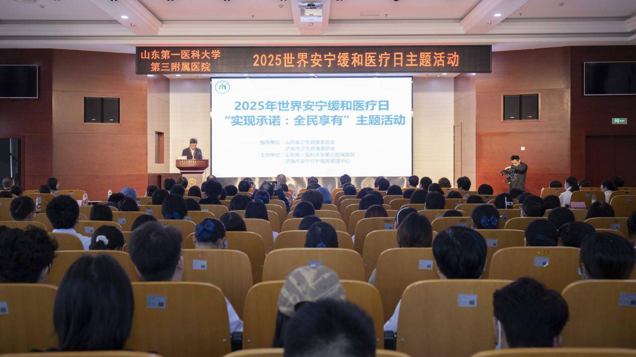 10月11日上午,山东第一医科大学第三附属医院举办2025世界安宁缓和医疗日主题活动。山东省卫生健康委员会医养健康处处长、一级调研员吴黎明,济南市卫生健康委员会医养健康处处长左占峰、二级调研员王芝美等领导莅临指导。山东第一医科大学(山东省医学科学院)副校(院)长、医院院长辛涛,党委书记仲浩,纪委书记杨春志,党委副书记吕宝玉,党委委员、副院长龙飞,副院长张钟文,肿瘤内科首席专家盛立军等院领导及专家出席活动。济南市安宁疗护专家委员会委员、区县医疗机构专家及社区代表,以及医院各临床科室主任、护士长与相关医护人员200余人参加。活动仪式由党委委员、副院长龙飞主持。
