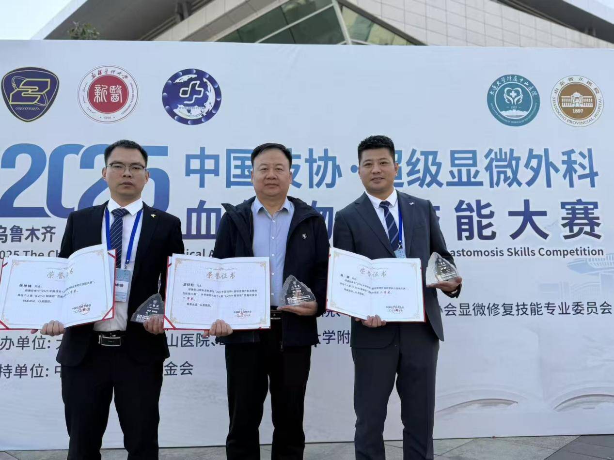 近日,在刚刚结束的2025年中国技协-超级显微外科血管吻合技能大赛中,山东第一医科大学第三附属医院创伤骨科及手足外科主任王衍彪带领高越、张坤锋两位医师参加0.2毫米个人精英赛并荣获全国二等奖!
