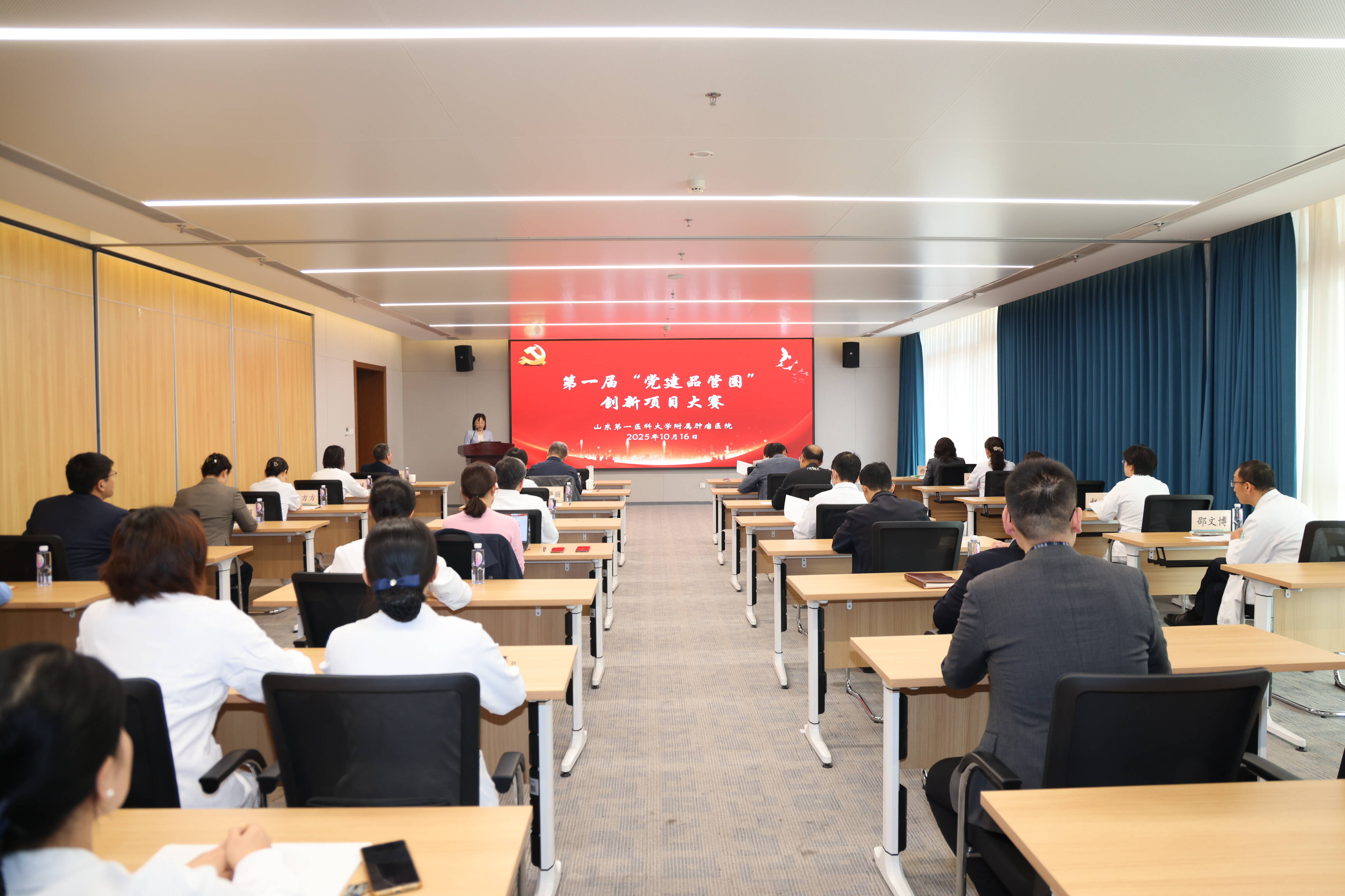 为推动党建与业务深度融合,以高质量党建引领医院高质量发展,10月16日,山东第一医科大学附属肿瘤医院举办第一届“党建品管圈”创新项目大赛。院领导、各党总支书记、党员代表参加,大赛由党委副书记路友华主持。