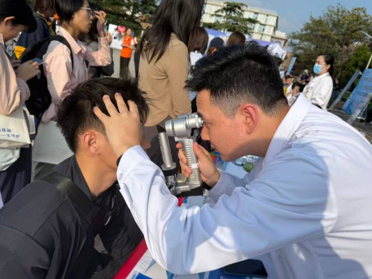 大学生是医保体系的重要参与者,希望科普活动能让他们积极了解政策、主动参保,更加关注身体健康和养成良好习惯。青岛眼科医院北部院区角膜屈光科彭予苏主治医师等参与本次科普义诊,为到场参加活动的师生解答眼科问题咨询,并通过电脑验光仪、裂隙灯等进行简单的眼科检查评估。彭予苏医师的讲解,让现场不少师生对眼科疾病治疗及相关医保政策有了更清晰的认知。
