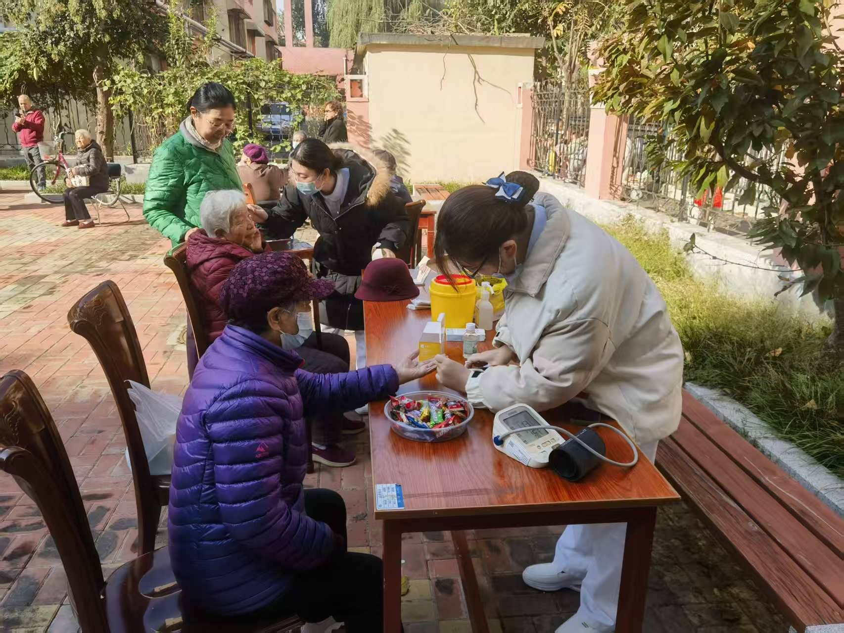 活动还为老同志们提供了血压血糖测量、耳穴压豆、健康咨询等服务。