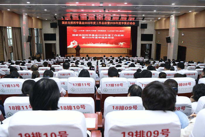 11月5日下午,山东第一医科大学第一附属医院召开国家自然科学基金2025年度工作总结会暨2026年度申报启动会。校(院)党委委员、医院党委书记孙志坚,校(院)党委委员、副校(院)长张占军,医院党委副书记、院长田辉,校(院)科研部副部长王蕾,医院领导班子成员及中层干部,2025年度获得立项的各位负责人代表和辅导专家代表,近三年新入院职工,在站博士后人员,专职科研人员,全院有资质申报2026年度国家自然科学基金人员参会。会议由医院党委委员、副院长张光永主持。