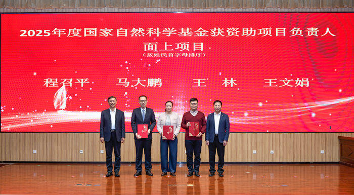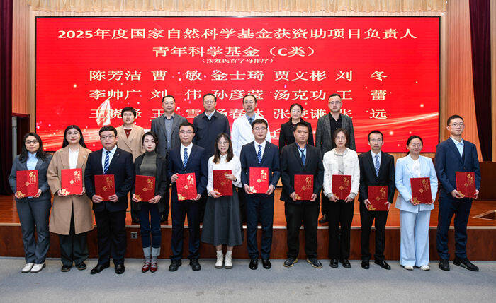 会议宣读表彰文件并举行颁奖仪式,2025年度国家自然科学基金辅导专家、项目负责人上台领奖。