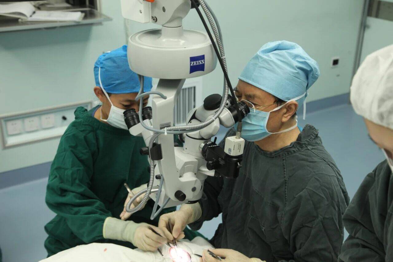 2015年谢立信(右)主刀完成全球首例生物工程角膜移植手术。