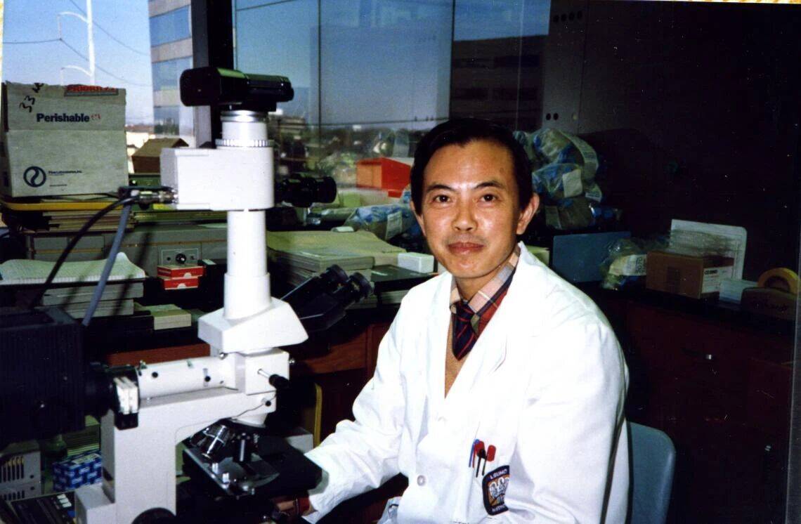 1987年,谢立信在美国路易斯安那州立大学眼科中心做角膜病研究。