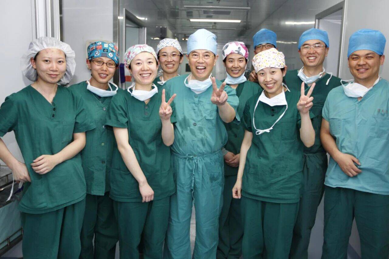 谢立信(左5)与手术室团队顺利完成疑难眼病手术后合影。
