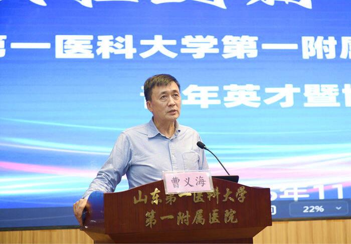 为深入实施人才强院战略,扎实推进医院人才队伍建设,11月14日下午,山东第一医科大学第一附属医院主办的“赋能创新・共话未来”青年英才暨博士后学术论坛如期举行。本次论坛特邀中国工程院外籍院士、瑞典卡罗林斯卡医学院终身教授曹义海院士莅临指导并作专题学术报告。校(院)党委委员、医院党委书记孙志坚,在家院领导班子成员、“青年英才”培育工程入选人员、在站博士后研究人员及科研骨干100余人参加活动。