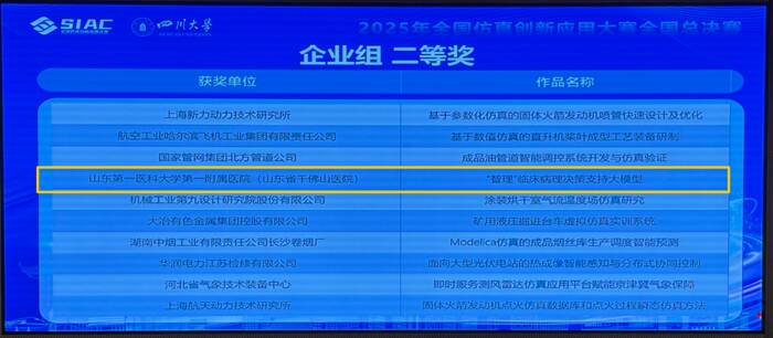 近日,由工业和信息化部人才交流中心主办、四川大学创新创业学院承办的“2025年全国仿真创新应用大赛”全国总决赛在四川成都圆满落幕。山东第一医科大学第一附属医院申报的《“智理”临床病理决策支持大模型》项目,在全国众多参赛作品中脱颖而出,荣获全国二等奖。