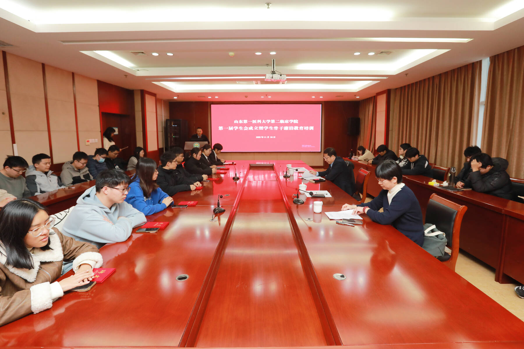 11月24日,山东第一医科大学第二附属医院(第二临床学院)成立大会暨学生骨干廉洁教育培训在综合楼4楼会议室举行,标志着医院(学院)学生工作迈入了一个新阶段,为学生自我管理、自我服务、自我成长搭建了重要平台。