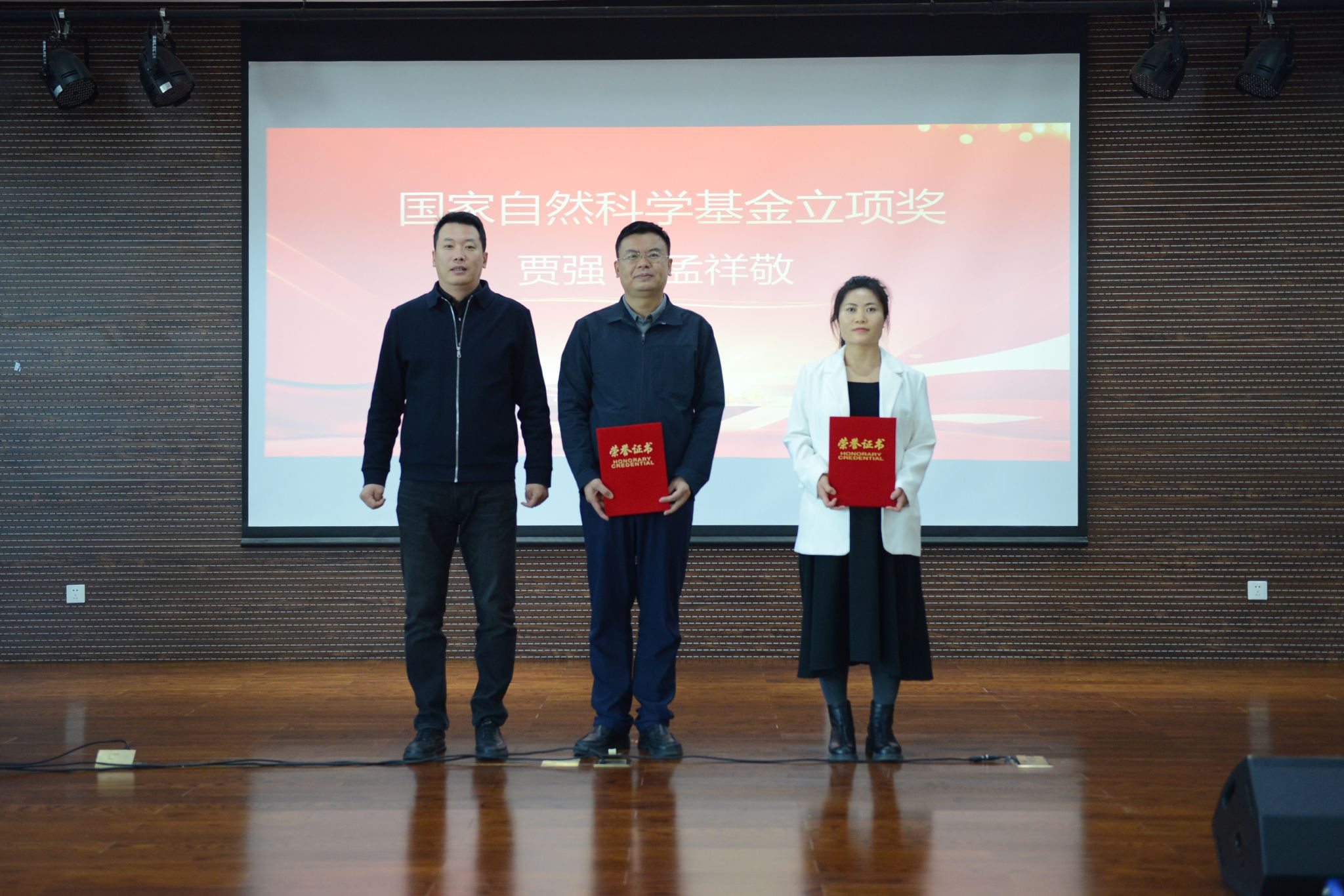 大会对2025年度国家自然科学基金立项人员贾强、孟祥敬予以表彰。作为立项代表,贾强作了国家自然科学基金申报立项工作辅导报告,分享了申报立项经验。