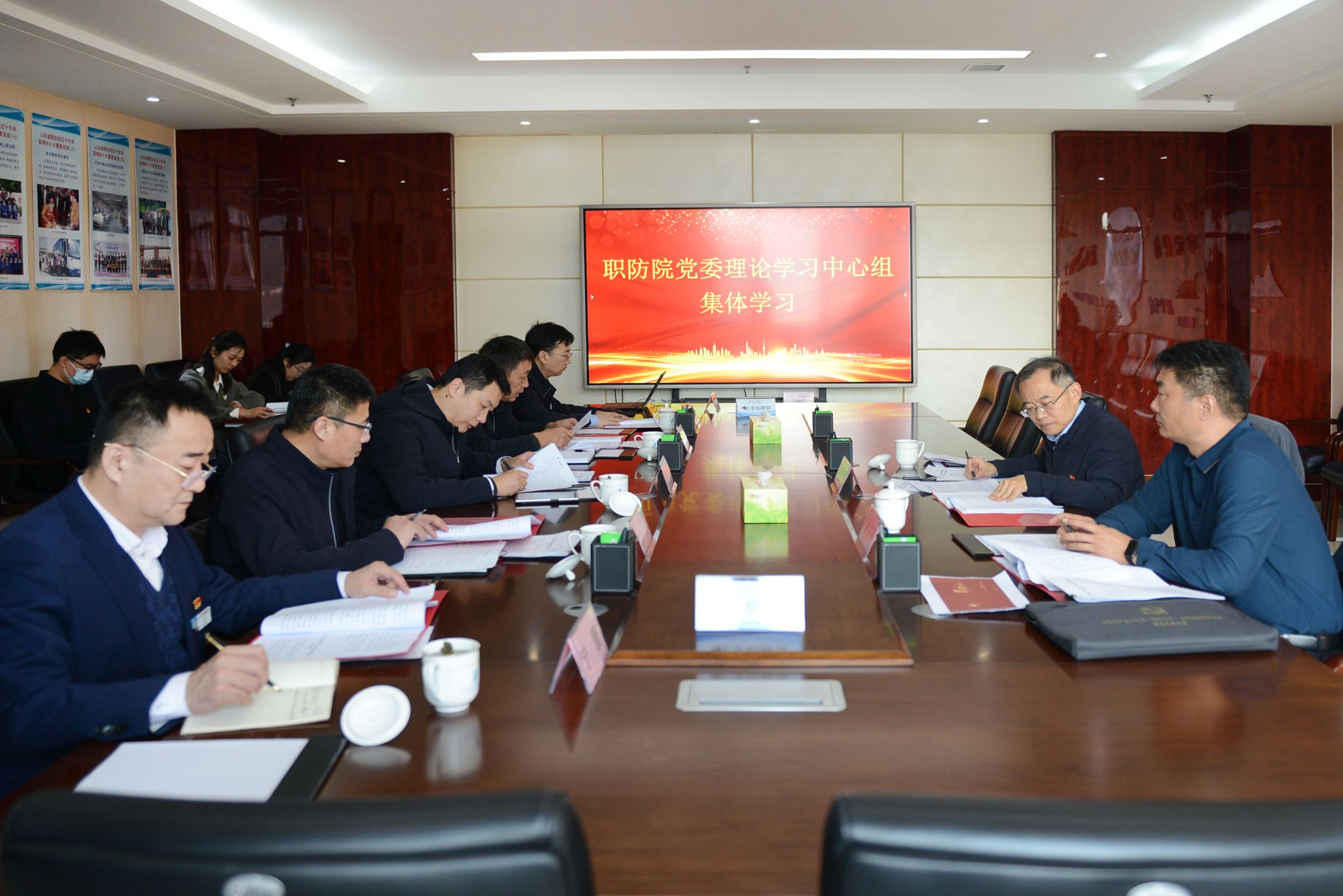12月9日,山东省职业卫生与职业病防治研究院召开2025年第十二次党委理论学习中心组集体学习会议。校(院)党委副书记王宇轩列席指导,职防院党委书记、院长李昱主持,党委理论学习中心组成员参加会议,非中共党员领导班子成员、党委办公室主任及各党支部书记列席会议。