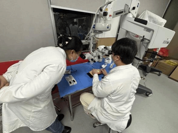 理论讲授后,两位讲师分别进行了细致的实操演示。王爽副主任医师在猪眼上逐步展示了角巩膜缝合的规范流程,从持针、进针到打结,动作稳健精准。禚伟主治医师则在仿真皮肤模型上演示了皮肤裂伤缝合的多种技法,手法娴熟流畅,对细节的把握尽显功力。学员们近距离观摩,不时记录关键步骤。
