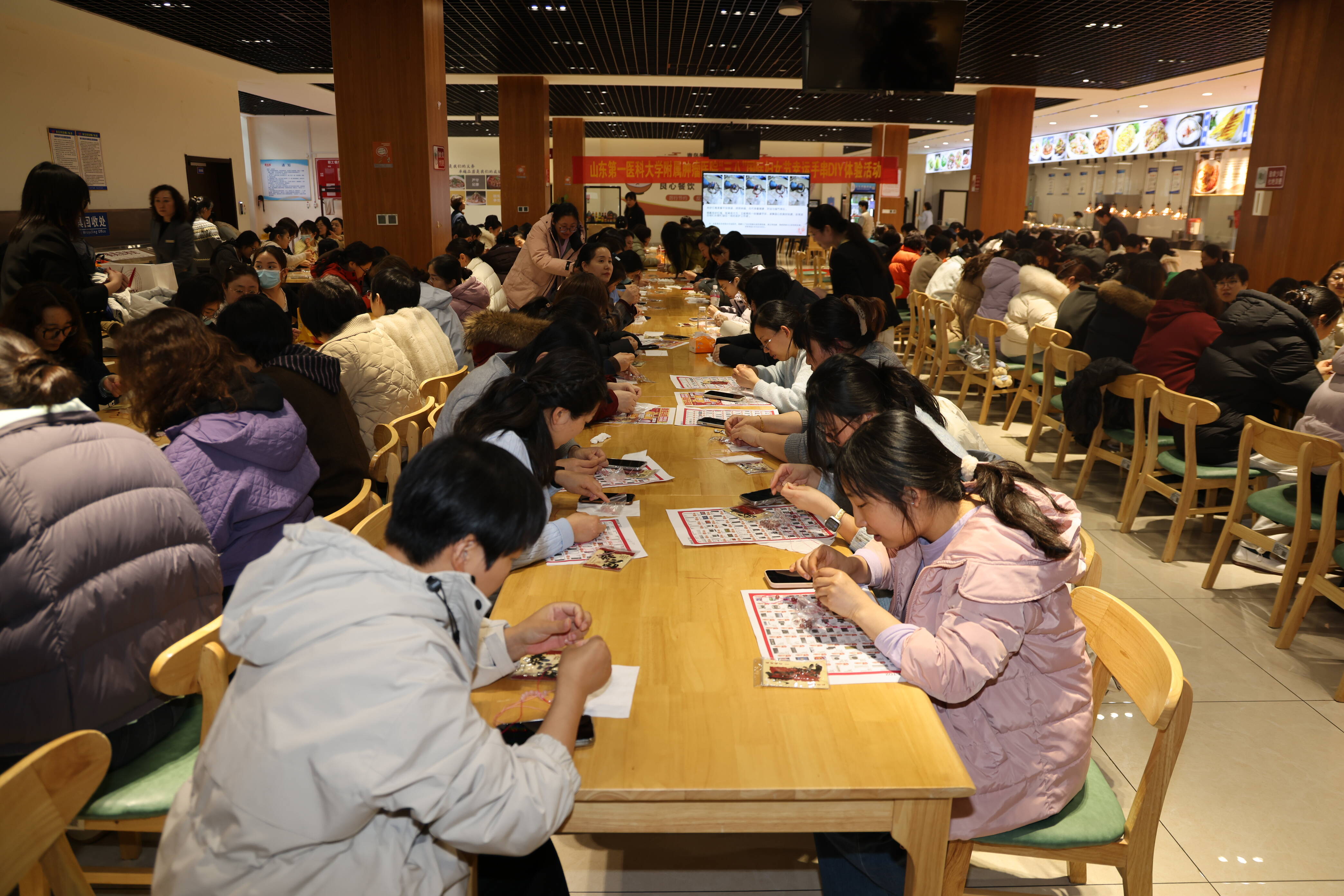 手串编织活动上,专业编织老师详细讲解选材、穿绳、打结等制作技巧,现场演示关键步骤。女职工们兴致盎然、巧手穿梭,精心搭配珠饰、互相交流心得,欢声笑语不断。大家在轻松愉悦的氛围中感受手工创作的乐趣,现场气氛热烈融洽、温馨美好,一件件精致手串相继完成,尽显巾帼巧思与优雅风采。