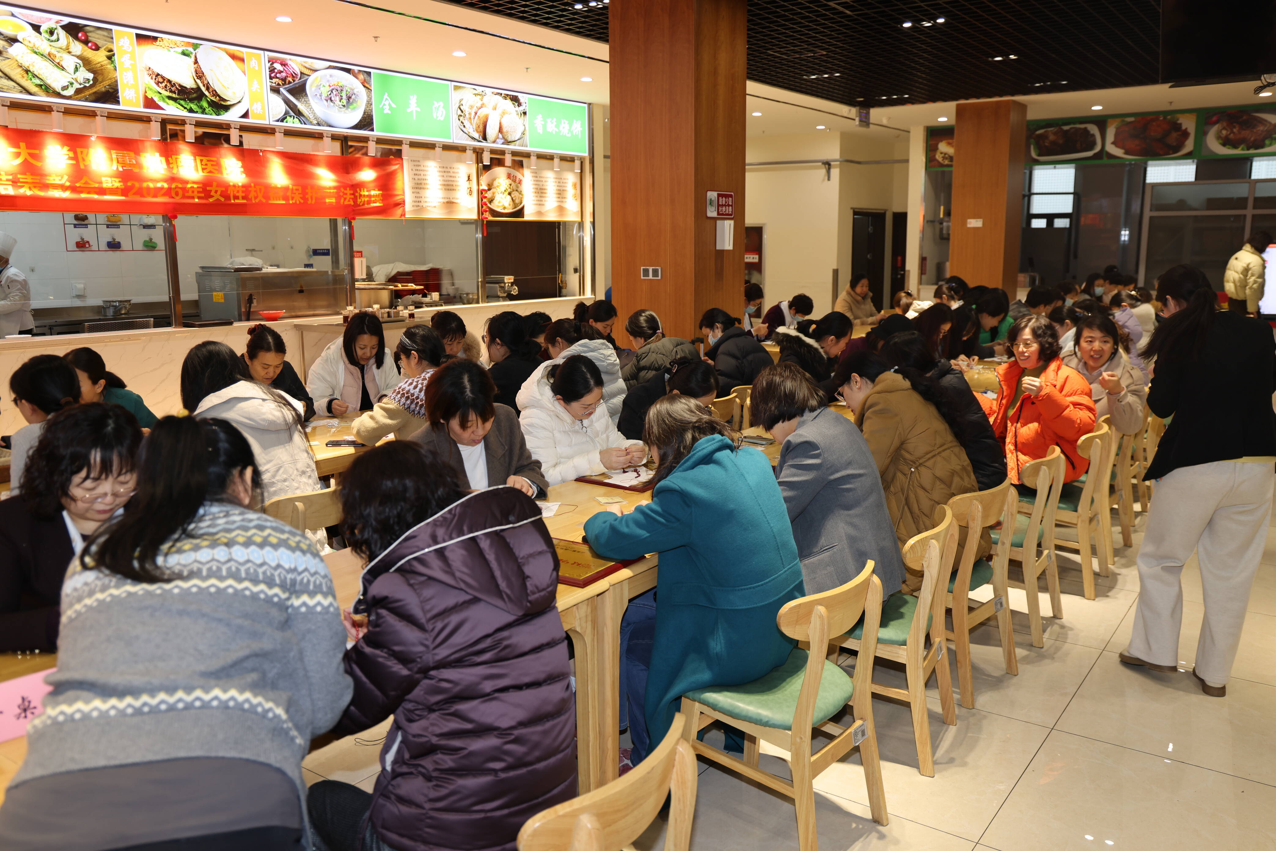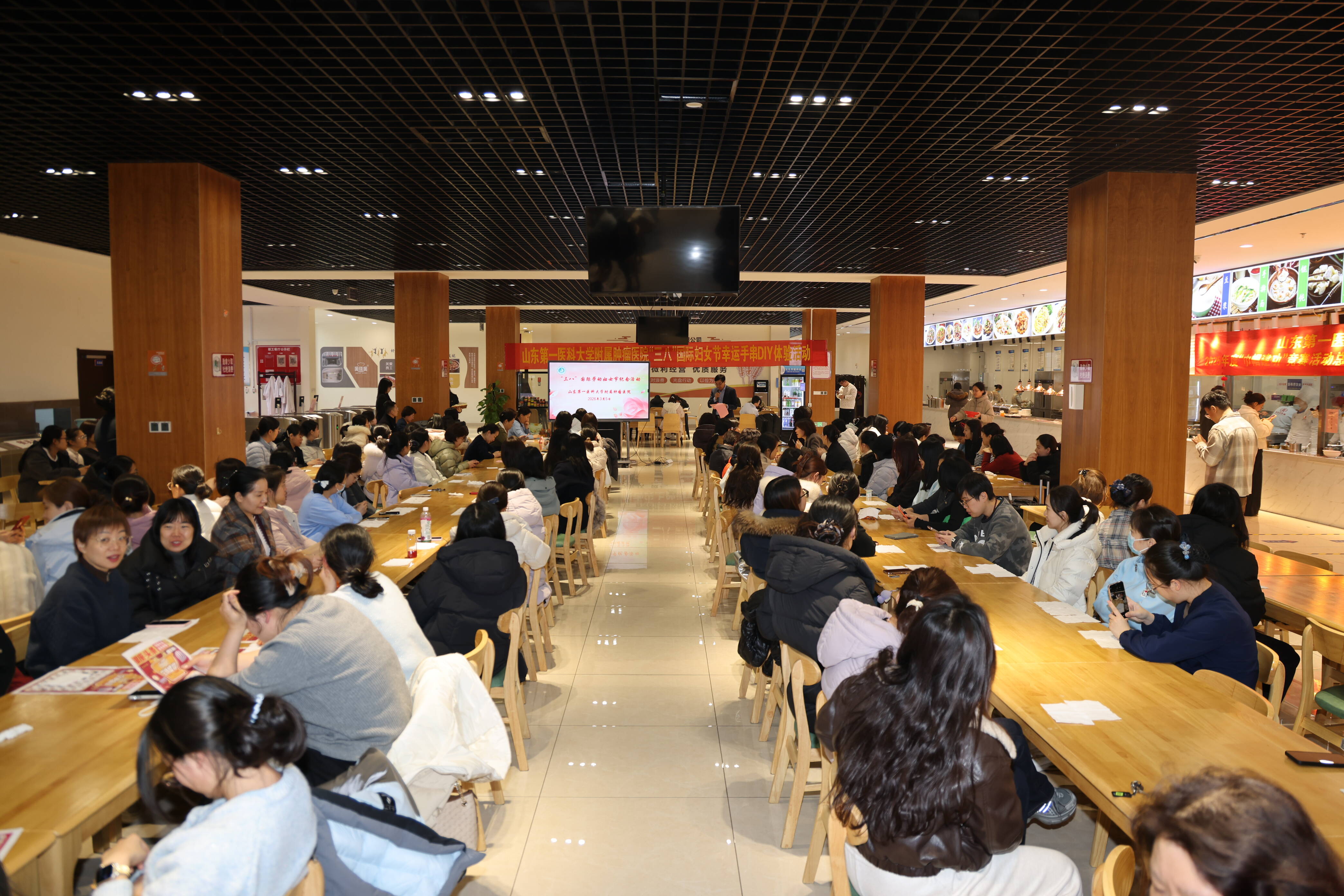 3月5日,为迎接第116个“三八”国际劳动妇女节,山东第一医科大学附属肿瘤医院举办了2026年度巾帼建功竞赛活动总结表彰暨2026年度女性权益保护普法讲座暨手串编织DIY活动。在职女职工代表,包括院领导,女性知名专家、十佳科主任、十佳护士长,配偶为现役军人的女职工共180余人参加活动。活动由工会主席、院长助理宋现让主持。