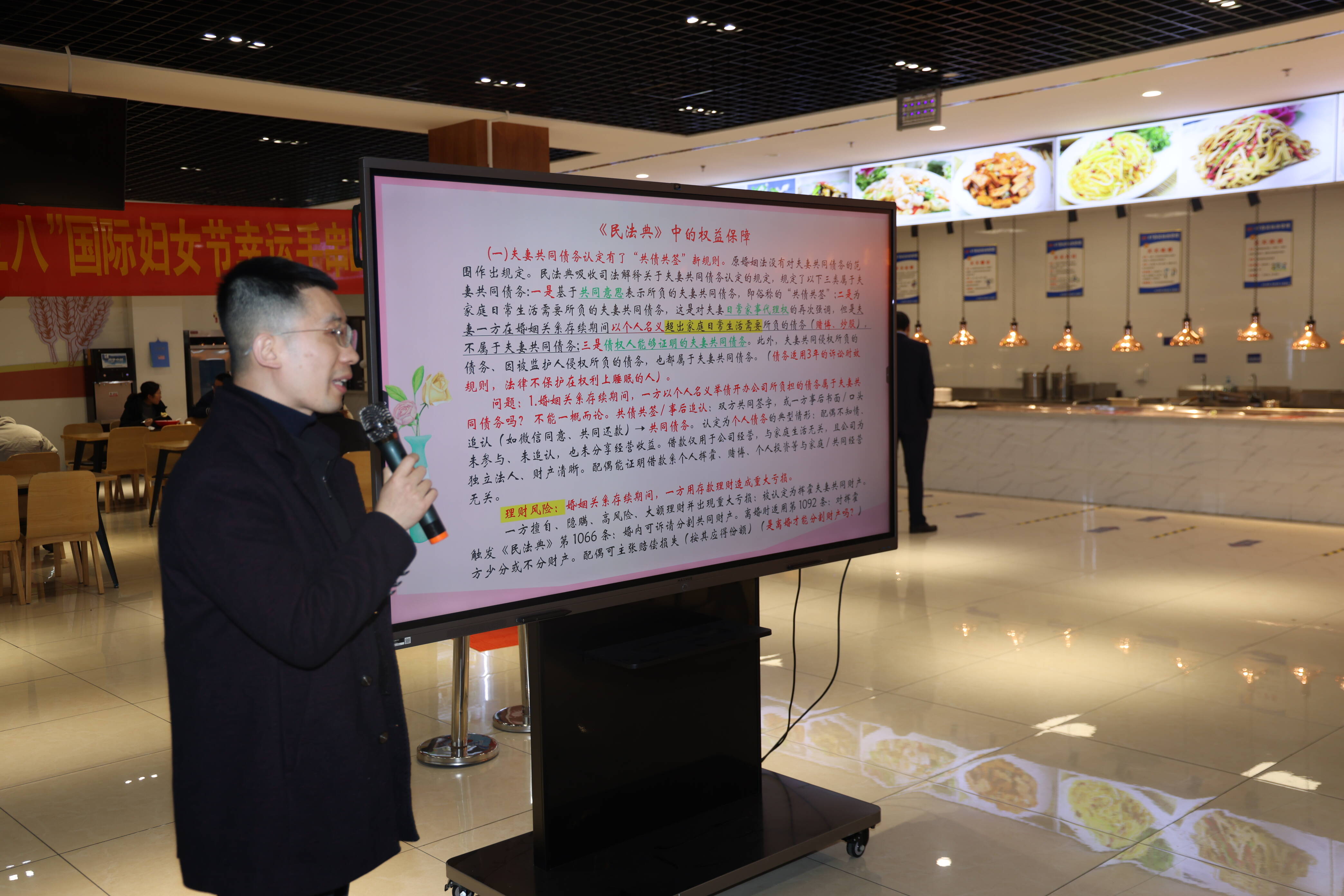 随后,医院法治建设工作办公室工作人员为大家深入讲解了妇女权益保障相关法律法规,结合典型案例普及法律知识,引导女职工学法、懂法、守法、用法,切实增强法治意识与自我保护能力。
