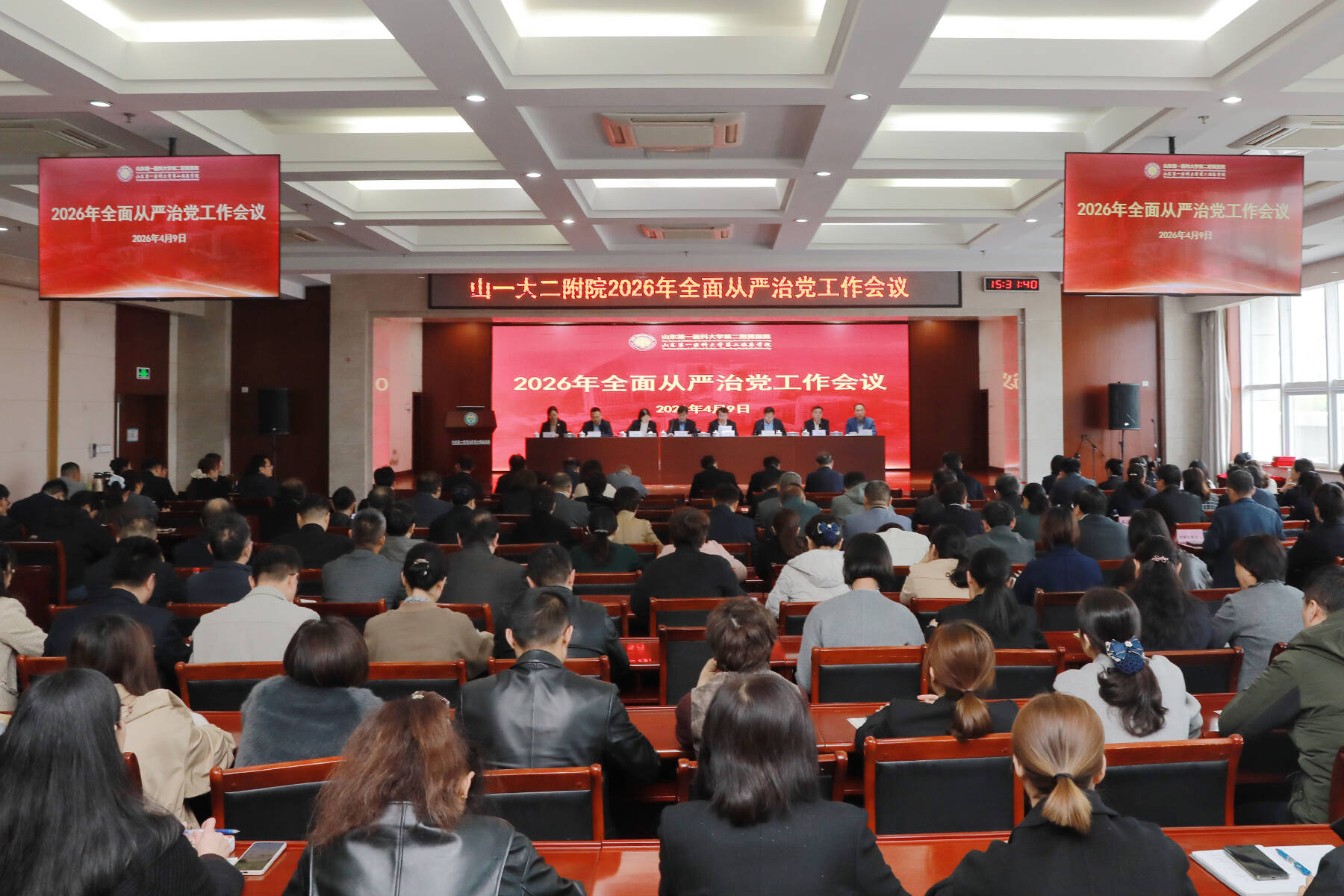 近日,山东第一医科大学第二附属医院(第二临床学院)召开2026年全面从严治党工作会议,系统总结2025年工作成效,分析研判当前形势,对新一年全面从严治党、党风廉政建设和反腐败工作作出统筹安排。医院(学院)党委书记曹铭锋作讲话,党委副书记、院长肖强主持会议,纪委书记张传新作2025年全面从严治党工作总结。医院(学院)其他领导班子成员、各党总支及党支部书记、职能部门正副职、各科室(含病区)主任、护士长及主持工作的副护士长等参加会议。