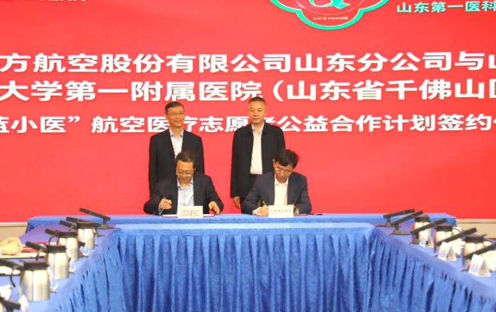 此次签约,是东航“空中蓝小医”项目在山东落地的首次布局,第一附属医院是该项目在省内签约的首家医疗机构,也是医院公益服务模式的一次全新拓展。孙志坚在签约仪式上表示,“空中蓝小医”签约项目是将医院优质医疗资源与东航的航空服务网络深度互补的务实之举,更是公立医院主动担当社会责任、拓展公益服务边界的生动体现。未来医院将组建专属“空中蓝小医”志愿者队伍,实现专业医疗救助的快速响应和精准对接,为广大旅客的安全出行保驾护航,让公益温度传递至万米高空。