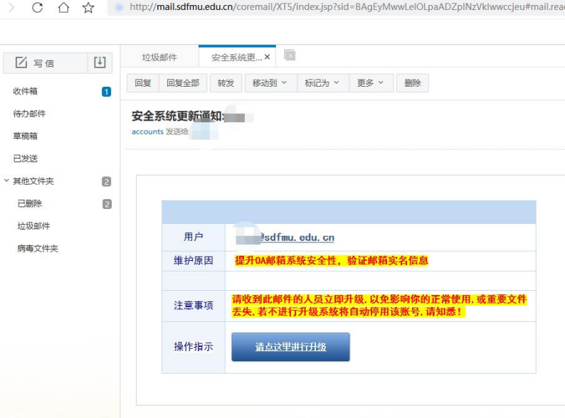 为防范此类钓鱼邮件给校(院)职工造成损失,现通知如下: