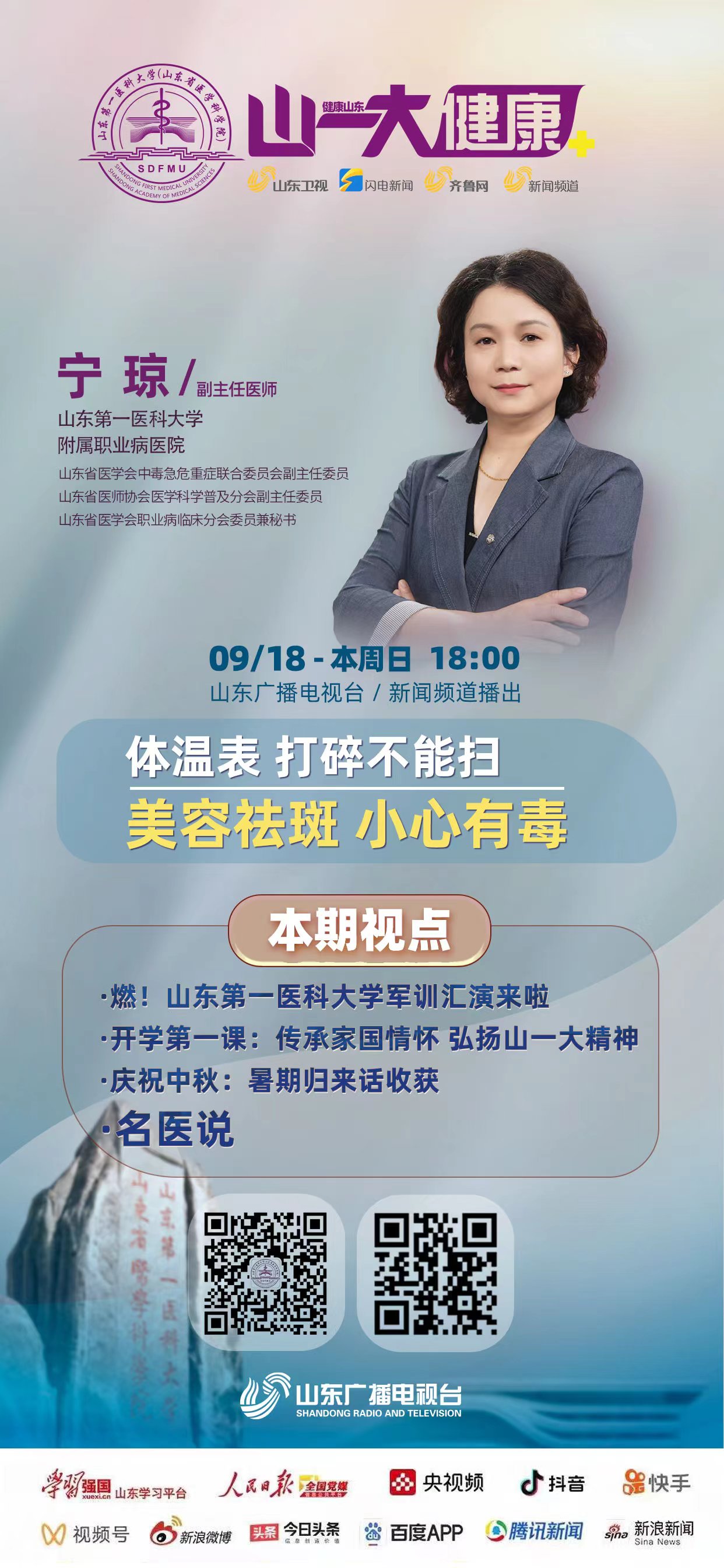 《山一大健康》是山东广播电视台与山东第一医科大学(山东省医学科学院)联合推出全国首档科教融合类电视专栏,旨在展示科教融合的新成就,聚焦医学研究的新发展,反映人民健康的新期待,打造医媒共建的新高地。