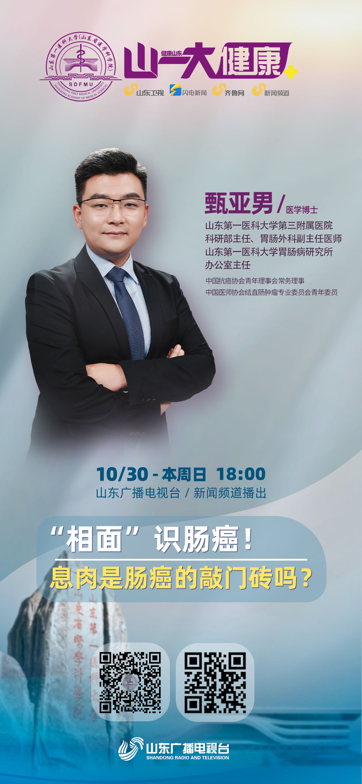 《山一大健康》是山东广播电视台与山东第一医科大学(山东省医学科学院)联合推出全国首档科教融合类电视专栏,旨在展示科教融合的新成就,聚焦医学研究的新发展,反映人民健康的新期待,打造医媒共建的新高地。