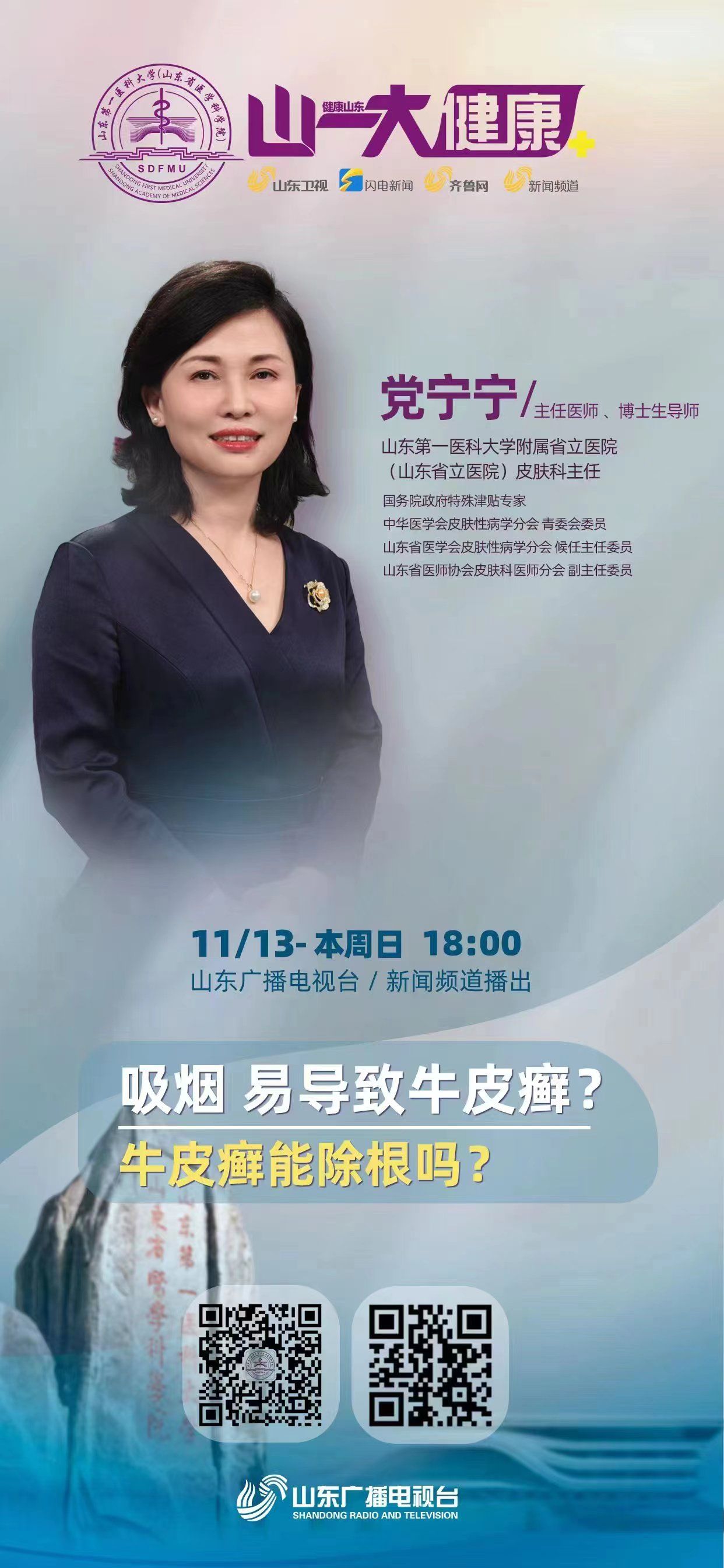 党宁宁,教授,博士研究生导师,山东第一医科大学附属省立医院皮肤科主任,主任医师,国务院政府特殊津贴专家。中华医学会皮肤性病学分会青委会委员,山东省医学会皮肤性病学分会候任主任委员,山东省医师协会皮肤科医师分会副主任委员。