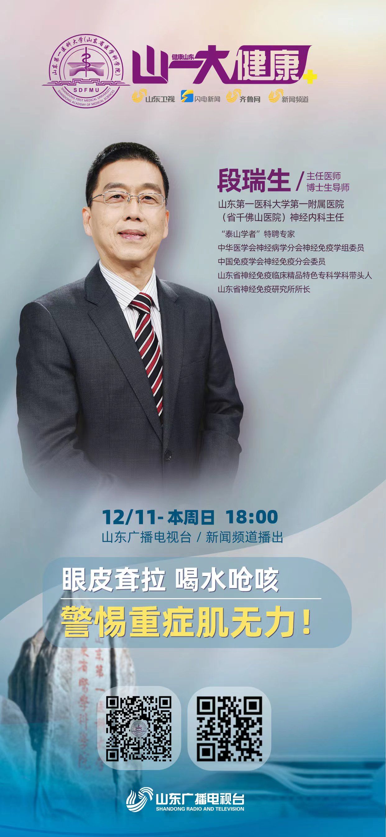 《山一大健康》是山东广播电视台与山东第一医科大学(山东省医学科学院)联合推出全国首档科教融合类电视专栏,旨在展示科教融合的新成就,聚焦医学研究的新发展,反映人民健康的新期待,打造医媒共建的新高地。