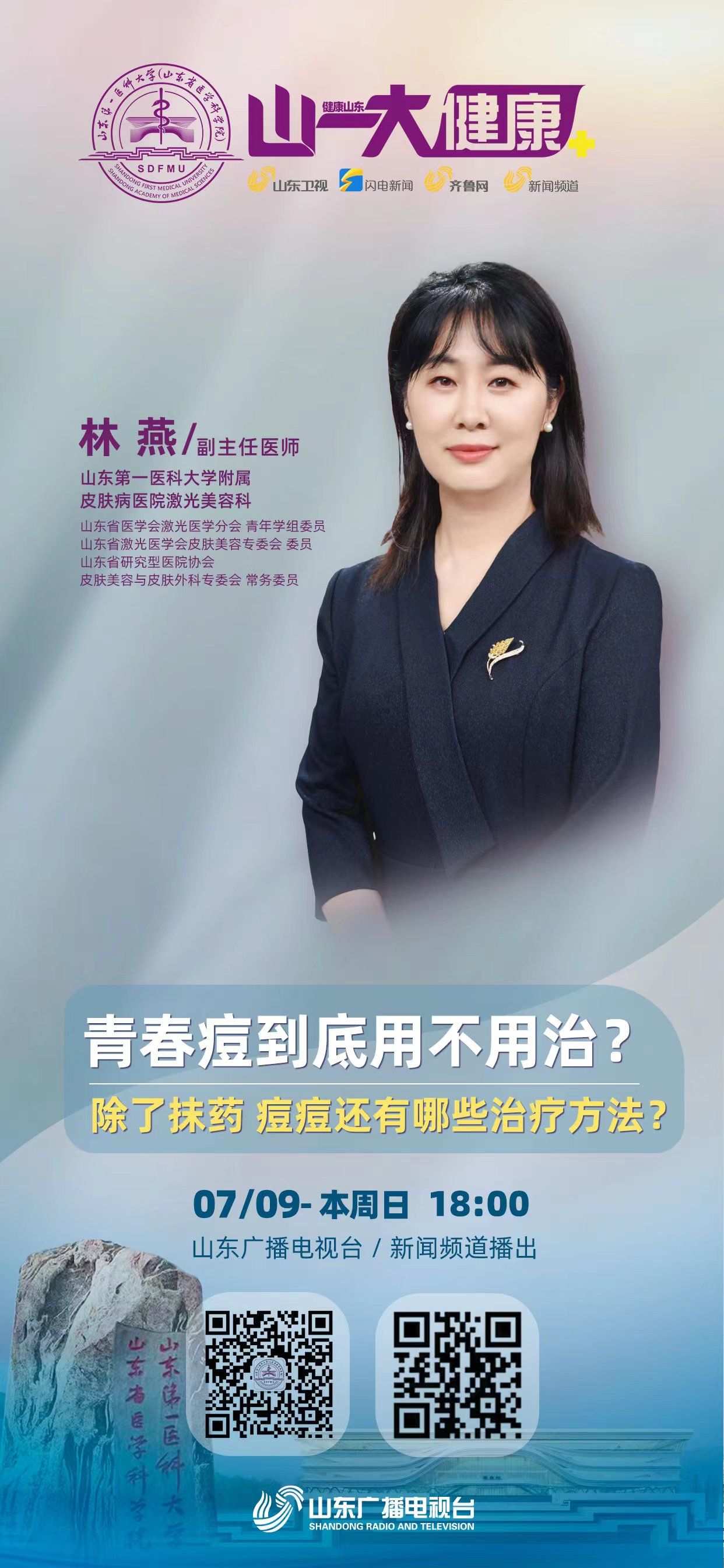 青春痘是一种疾病吗?需要治疗吗?青春痘常见的五种形态是什么?闭口粉刺是什么?痤疮跟遗传有关系吗?青春痘后痤疮常发于哪个阶段?与哪些因素有关?硫磺皂、刷酸能有效祛痘吗?长痘痘不敢用护肤品,也是不对的吗?为什么不建议自己在家刷酸?网络上各种祛痘信息,如何正确筛选?为什么不建议自己清痘?青春痘“熟了”,能挤吗?三角区域挤痘有何危害?痤疮在青春期可“根除”吗?青春痘反复发作如何应对?使用药物治疗青春痘,会产生依赖吗?点阵激光治疗痘坑或者瘢痕治疗周期是怎样的?痤疮分哪几级?使用光电仪器治疗痤疮,该如何选择?长痤疮容易留下疤痕,原因有哪些?痤疮导致的皮肤问题,随着痤疮消失会得到改善吗?痤疮后遗症过了最佳治疗期,治疗效果还会好吗?本期“名医说”,邀请山东第一医科大学附属皮肤病医院激光美容科专家为您科普青春痘防治相关知识,敬请收看节目,获取更多健康资讯。