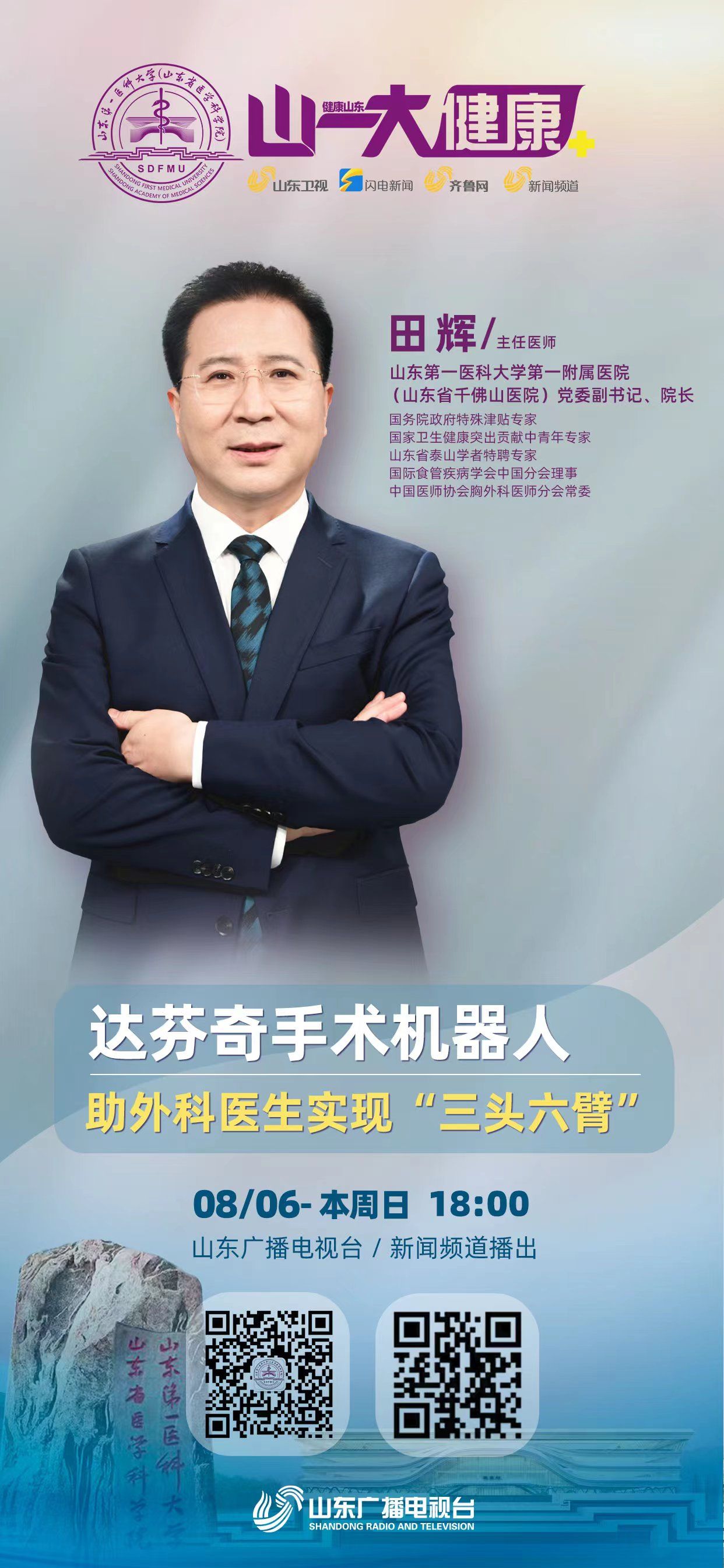 《山一大健康》是山东广播电视台与山东第一医科大学(山东省医学科学院)联合推出全国首档科教融合类电视专栏,旨在展示科教融合的新成就,聚焦医学研究的新发展,反映人民健康的新期待,打造医媒共建的新高地。