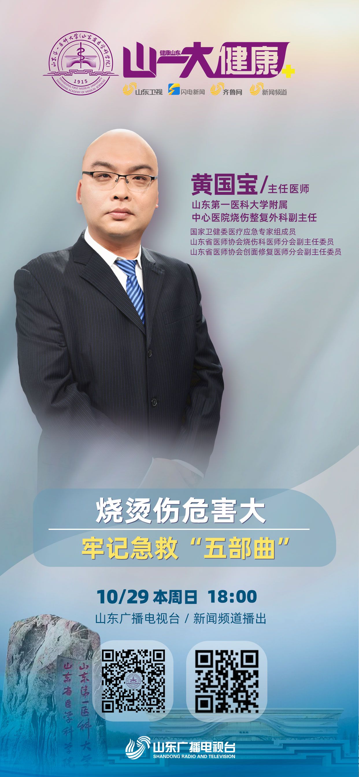 应对烧烫伤,涂抹如酱油、醋、香油、牙膏等科学吗?烧烫伤创面,可以涂抹牙膏消炎吗?烫伤急救分几步?分别是什么?有哪些讲究?最重要的步骤是什么?烧烫伤后,什么情况需要送医治疗?轻微烧烫伤创面,可以涂抹什么药膏?儿童烧烫伤危害大,家庭应如何预防?儿童在学校如何预防烧烫伤?儿童烧烫伤的家庭高危场所有哪些?分别应如何预防?烧烫伤后瘢痕的处理方式有哪些?附属中心医院烧伤整复科有哪些特色和优势?本期“名医说”邀请山东第一医科大学附属中心医院专家为您科普烧烫伤相关知识,敬请收看节目,获取更多健康资讯。