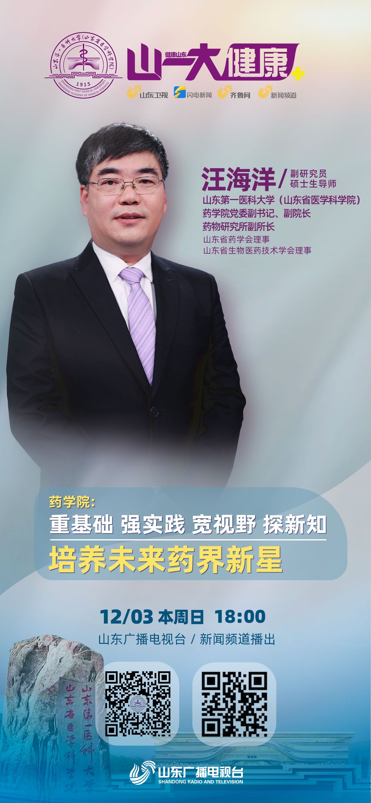 《山一大健康》是山东广播电视台与山东第一医科大学(山东省医学科学院)联合推出全国首档科教融合类电视专栏,旨在展示科教融合的新成就,聚焦医学研究的新发展,反映人民健康的新期待,打造医媒共建的新高地。