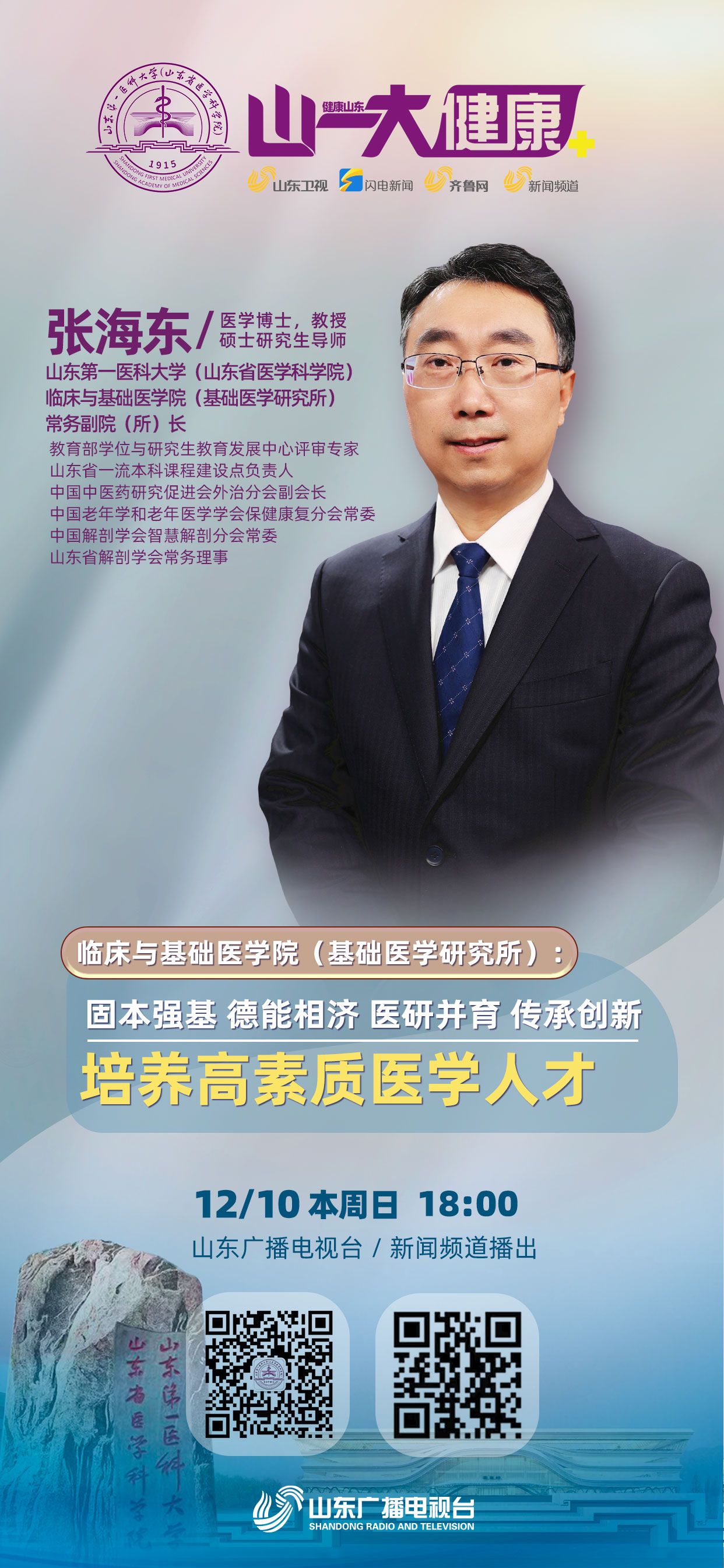 《山一大健康》是山东广播电视台与山东第一医科大学(山东省医学科学院)联合推出全国首档科教融合类电视专栏,旨在展示科教融合的新成就,聚焦医学研究的新发展,反映人民健康的新期待,打造医媒共建的新高地。