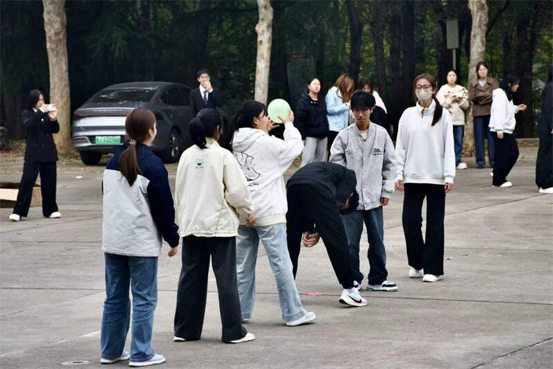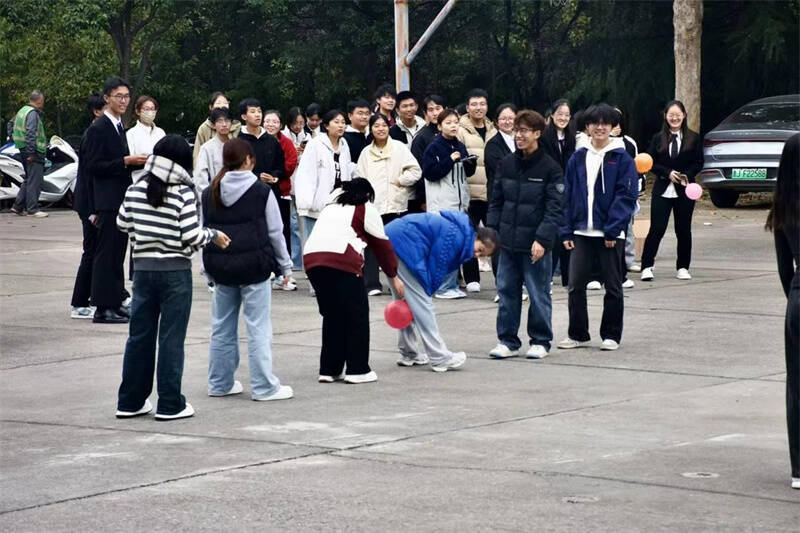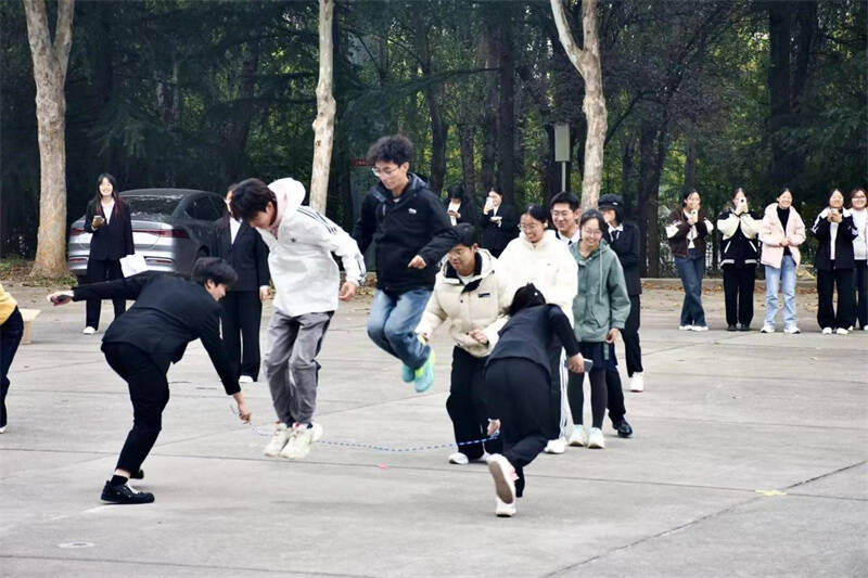 趣味游戏环节同样热闹非凡。“当空接龙” 中,同学们分工协作、反应迅速,接力传递道具的身影穿梭在赛场,默契配合中彰显团队力量;“一跳到底” 里,参赛选手们灵活跳跃、奋勇争先,在欢声笑语中突破自我,将现场氛围推向高潮。两个游戏将趣味性与协作性完美融合,让同学们在轻松竞技中拉近了距离,增进了同窗情谊。