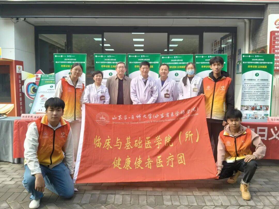 青春脚步丈量社区,专业知识服务百姓。近日,临床与基础医学院“健康使者”大学生社会实践服务团,联合附属省立医院专家团队以及槐荫区卫生健康委员会,走进槐荫区印象济南商圈党群服务中心,持续开展以“中风识别与预防”为主题的“医心呵护”爱心义诊活动。