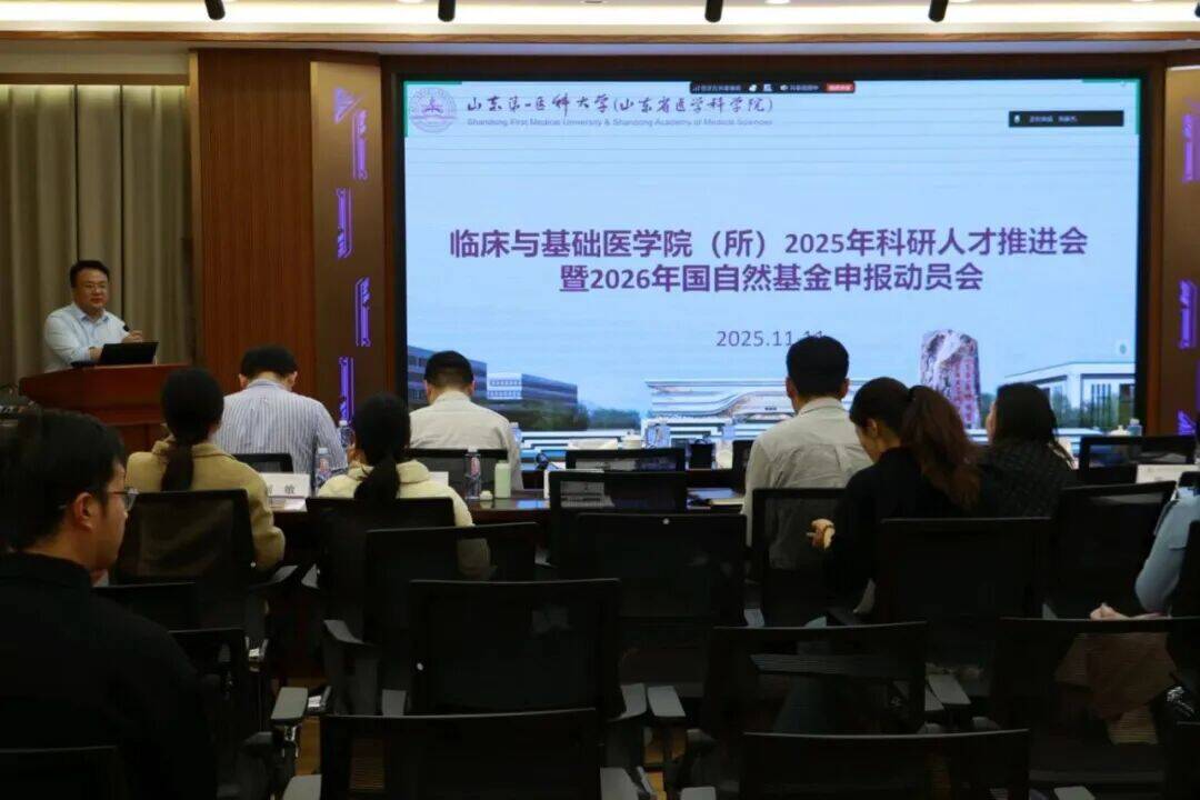 近日,临床与基础医学院(基础医学研究所)2025年科研人才推进会暨2026年国自然基金申报动员会在基础医学楼A座528报告厅举行,会议由临床与基础医学院(基础医学研究所)副院(所)长付小龙主持,多位国家杰青、优青专家莅临指导,全院科研骨干及相关教师参会。