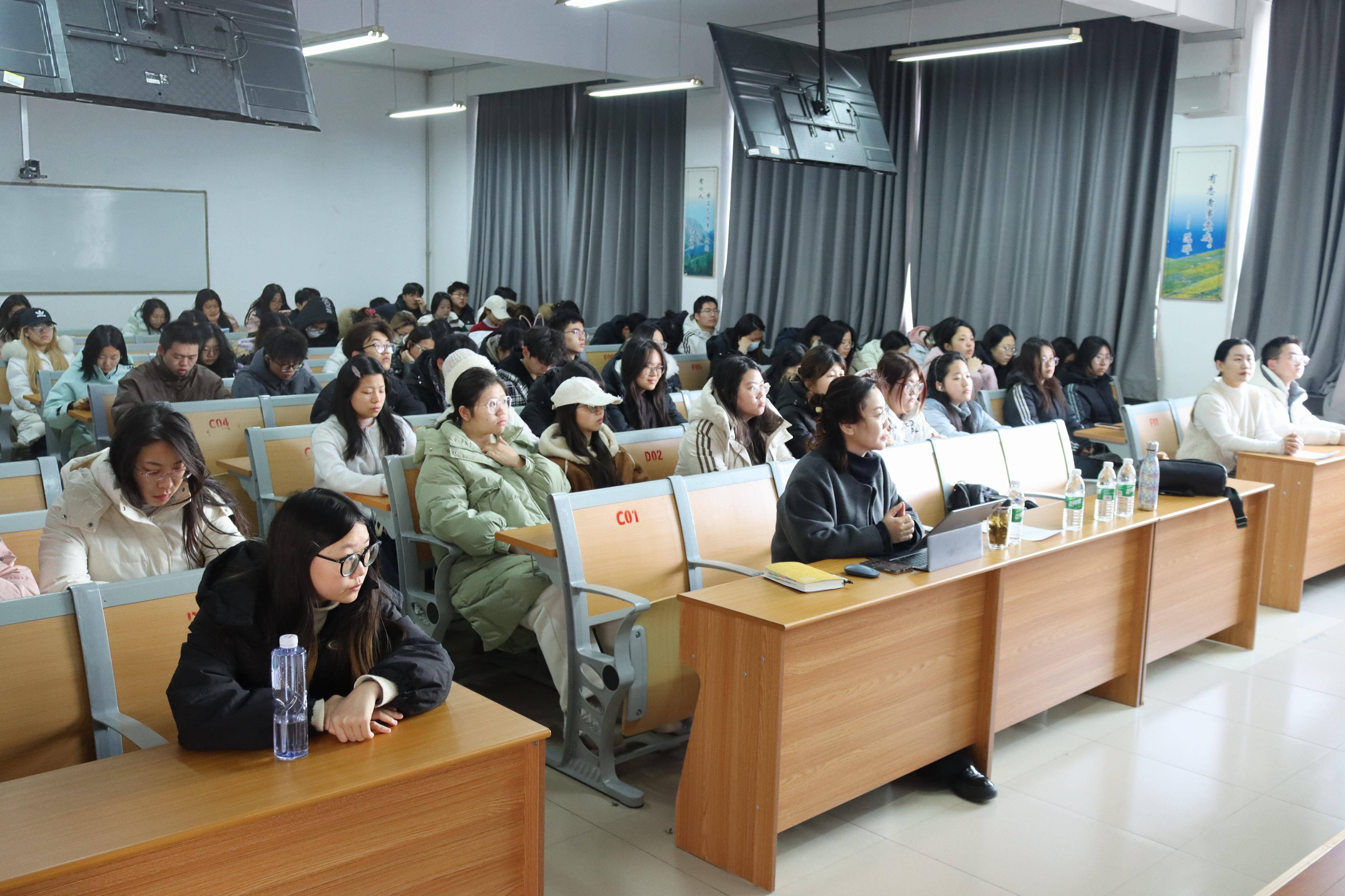 安静在活动开场表示,医药管理行业的发展离不开国际化的视野与格局,此次访学活动是一个难得的成长契机。希望同学们能结合自身发展规划,认真把握机会。马丽红则对留学项目中的环境概况、项目细节、行程规划、课程设计以及报名条件进行了全方位且深入的讲解,使学生得以全面了解该项目的学术交流价值、文化体验深度和专业实践特色。随后王燕细致阐述了学院在资金支持、学分认定、安全防护等方面的具体措施,为有意参与的学生提供了坚实的政策背书与周到的后勤服务。在互动交流环节,同学们就项目申请、学习计划、语言要求、文化交流等话题积极提问,三位老师均以耐心细致的态度逐一回应,现场互动氛围活跃。